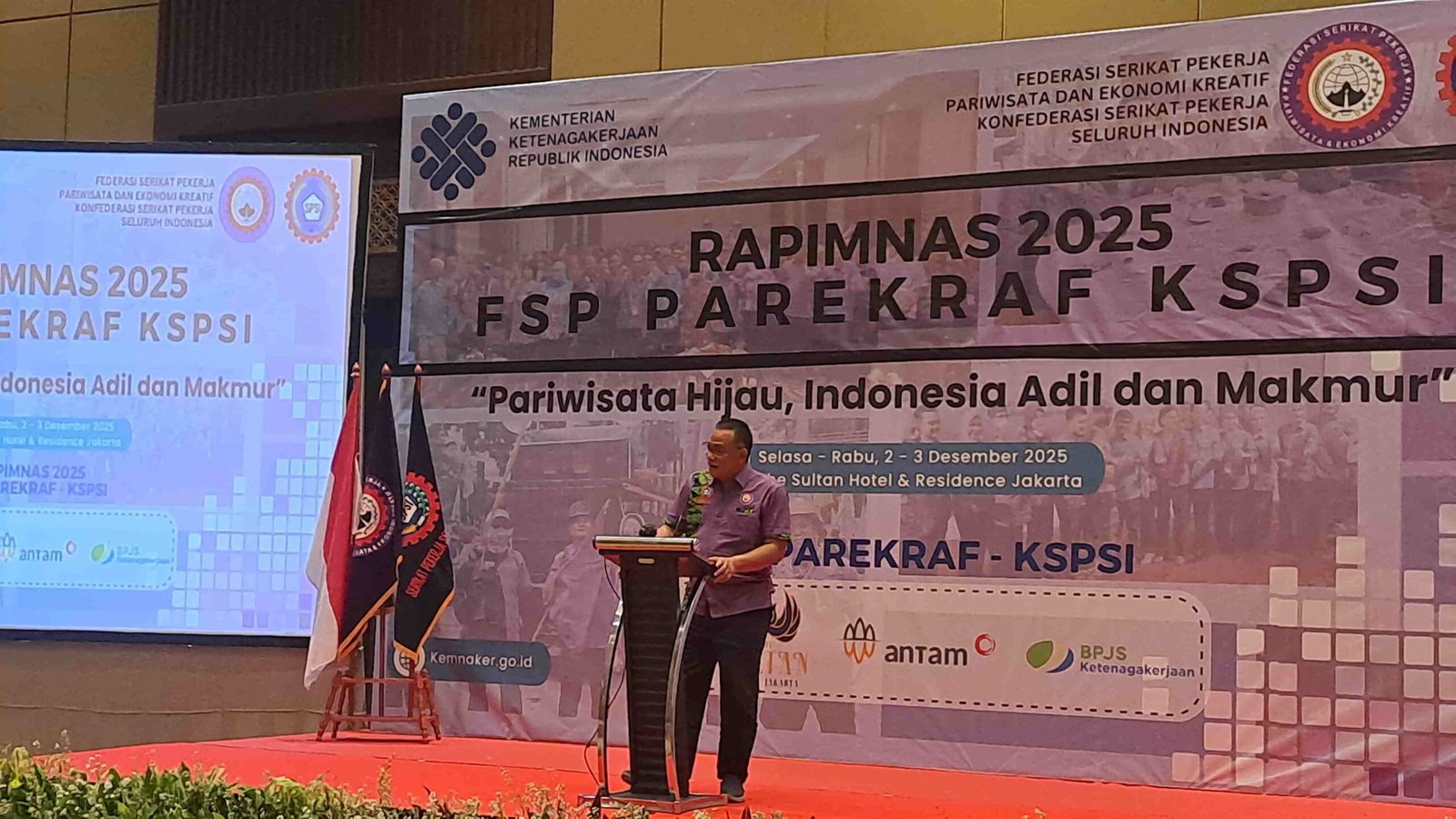 Rapimnas Parekraf 2025 dihadiri Ketua Umum Konfederasi Serikat Pekerja Seluruh Indonesia (KSPSI) Moh Jumhur Hidayat dan pembukaan oleh Menaker Yassierli serta Para Ketua Federasi Buruh yang tergabung di bawah KSPSI.
