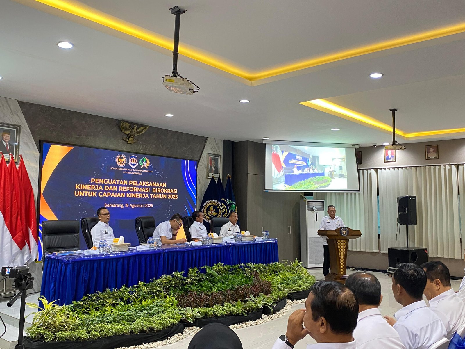 Semarang – Rutan Kelas I Surakarta Kantor Wilayah Direktorat Jenderal Pemasyarakatan Jawa Tengah turut hadir dalam kegiatan Penguatan Pelaksanaan Kinerja dan Reformasi Birokrasi yang digelar di Aula Kantor Wilayah Direktorat Jenderal Imigrasi Jawa Tengah, Selasa (19/08). Kegiatan strategis ini dihadiri langsung oleh Staf Khusus Bidang Penguatan Sumber Daya Manusia dan Transformasi Organisasi Imigrasi dan Pemasyarakatan, Y. Ambeg Paramarta, serta seluruh Kepala UPT se-Jawa Tengah.