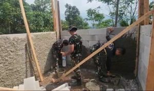 Sasaran tambahan pada program TMMD ke 121 Kodim 0601/Pandeglang berupa perehaban Rumah Tidak Layak Huni (RTLH) di kampung Nanggorak desa Cikumbueun kecamatan Mandalawangi Pandeglang Banten, memasuki proses pekerjaan dinding pemasangan bata ringan (Hebel), kusen pintu dan jendela, Rabu (31/07/24)