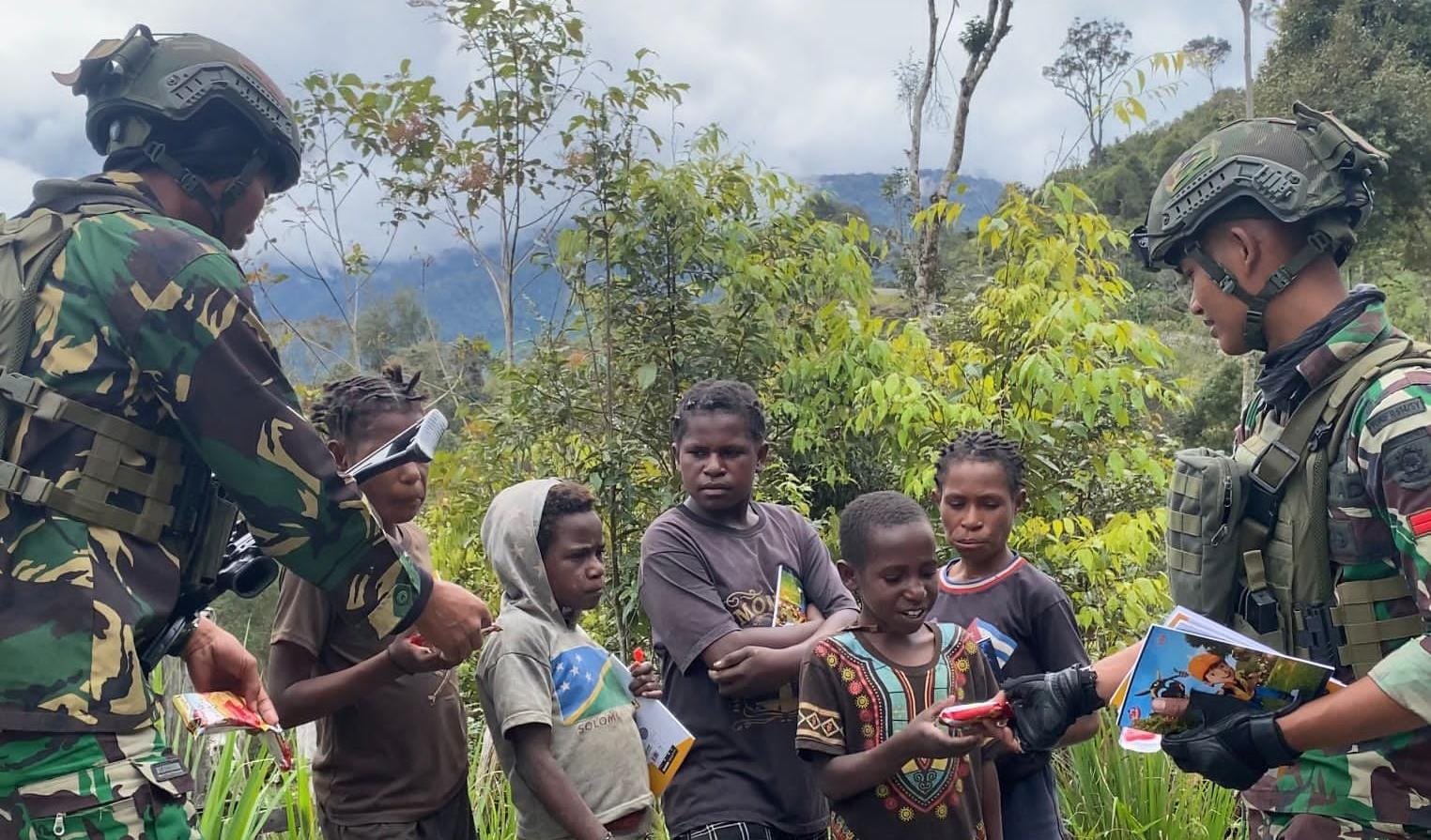 Satgas Yonif 509 Kostrad Patroli Sambil Berbagi di Kampung Amisiga, Intan Jaya