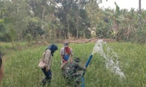 Koramil 0113/Cibaliung melalui Babinsa Desa Cihanjuang kecamatan Cibaliung Serka Arpan bersama penyuluh BPP Pertanian kecamatan Cibaliung melaksanakan kegiatan monitoring pemanfaatan irigasi perpompaan (Irpom) kelompok tani Suka Mekar, Sabtu (14/09/24)