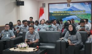 Ternate – Kantor Wilayah Kementerian Hukum Maluku Utara (Kanwil Kemenkum Malut) mengikuti Sosialisasi Kitab Undang-Undang Hukum Nasional (KUHP) bertajuk “Implementasi dan Tantangan Keberlakuan KUHP dalam Sistem Hukum Pidana Nasional Tahun 2026” yang diselenggarakan secara daring melalui Zoom Meeting dan siaran langsung YouTube, Senin (26/1).