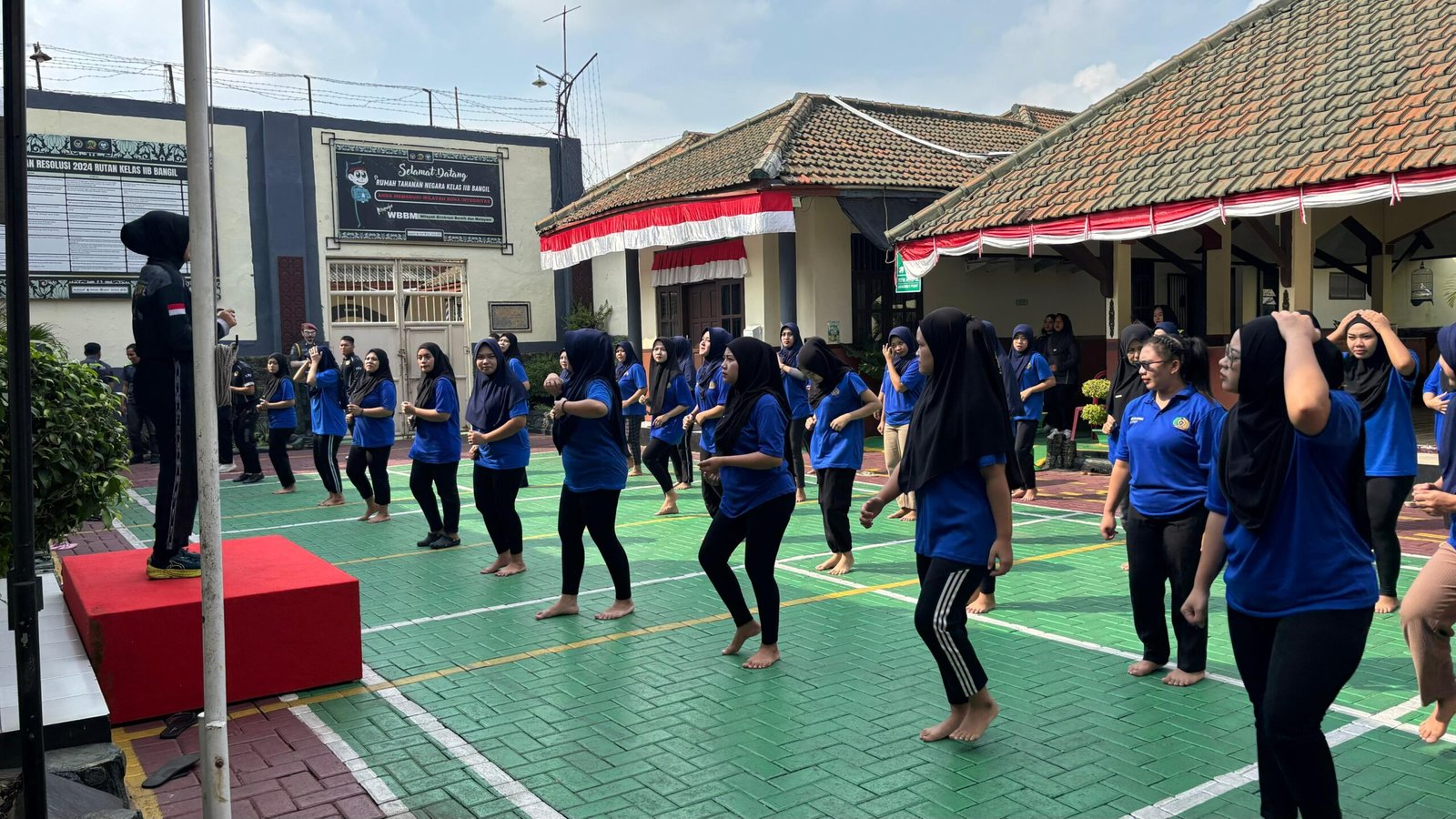Pasuruan – Rutan Kelas IIB Bangil menggelar kegiatan olahraga pagi yang diikuti oleh warga binaan blok wanita di halaman utama Rutan, Jumat (22/08). Kegiatan ini diawali dengan senam bersama yang dipimpin oleh Calon Aparatur Sipil Negara (CASN) Rutan Bangil, kemudian dilanjutkan dengan permainan voli yang berlangsung meriah dan penuh semangat.