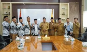 POLTEN.CO.ID- Walikota Serang Syafrudin menerima kunjungan audiensi Persatuan Guru Republik Indonesia (PGRI) Provinsi Banten dan Kota Serang, terkait pemberian Penghargaan Dwija Praja Nugraha, terkait bantuan atau Hibah, yang bertempat di Ruang Rapat Walikota Serang, Senin (24/20).