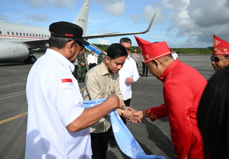 Mengawali kunjungan kerjanya di Provinsi Maluku Tenggara, Wakil Presiden (Wapres) Gibran Rakabuming menerima penyambutan hangat melalui upacara adat Kei Rinin setibanya di Bandar Udara Karel Sadsuitubun, Langgur, Rabu (15/10/2025). Prosesi sakral ini merupakan bentuk penghormatan tertinggi masyarakat Kei kepada tamu agung, sekaligus doa keselamatan bagi pemimpin bangsa yang menginjakkan kaki di tanah Maluku Tenggara.