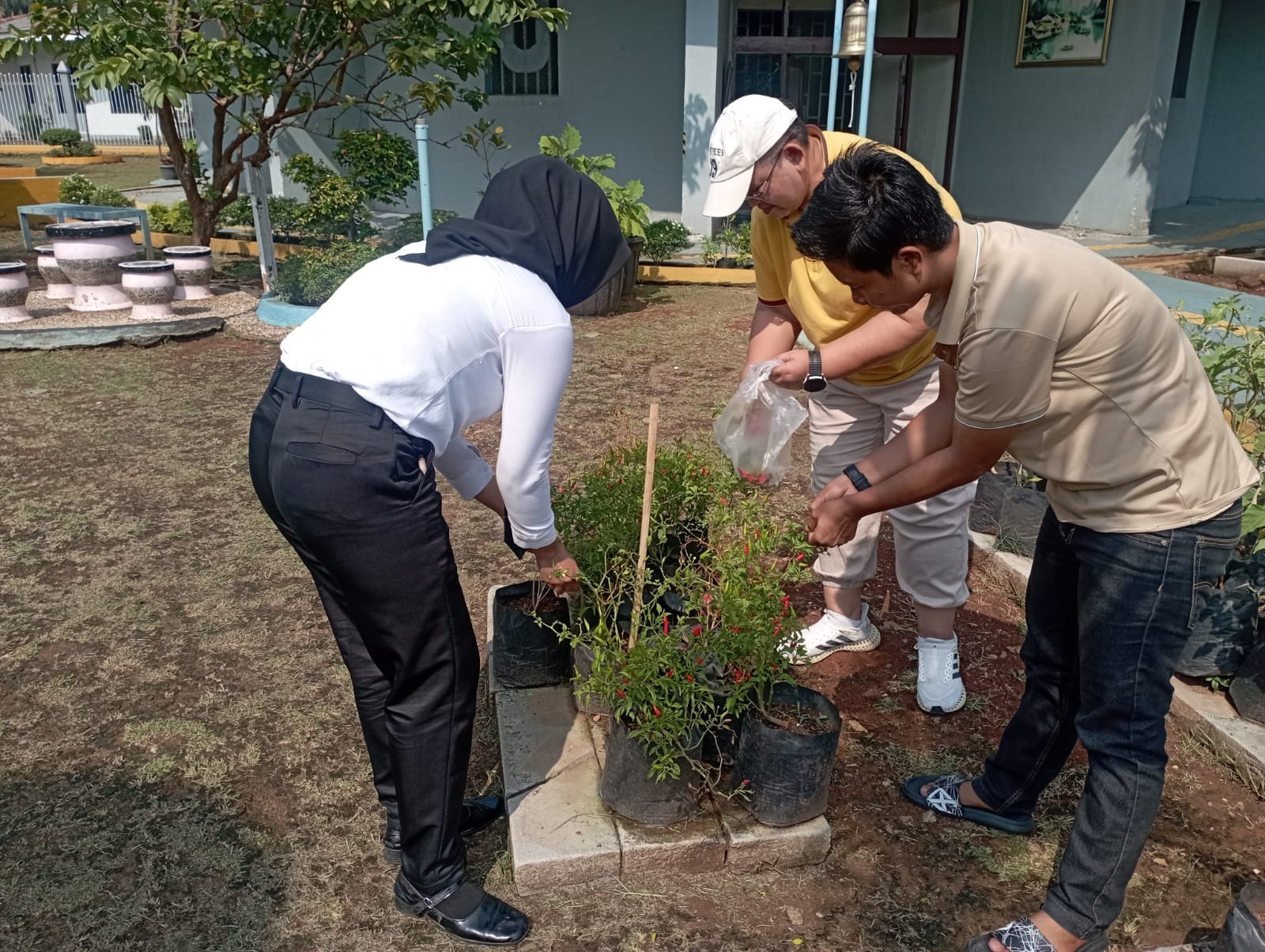 Tangerang — Warga binaan Lapas Perempuan Kelas IIA Tangerang melaksanakan kegiatan panen sayuran berupa terong dan cabai dari kebun pembinaan kemandirian yang dikelola di area dalam Lapas.